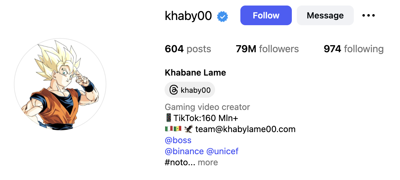 Senegalese-Italian content creator who became the most-followed TikTok user (161M+ followers) by silently reacting to overcomplicated life hacks with simple solutions. His universal, language-free humor transcends barriers, making him valuable for global brands seeking worldwide reach. Known for signature exasperated expressions and hand gestures. Based in Italy, earned up to $750K per post in 2022 and was named to TIME100 Creators list in July 2025. Partnerships include Hugo Boss, Binance, and UNICEF.