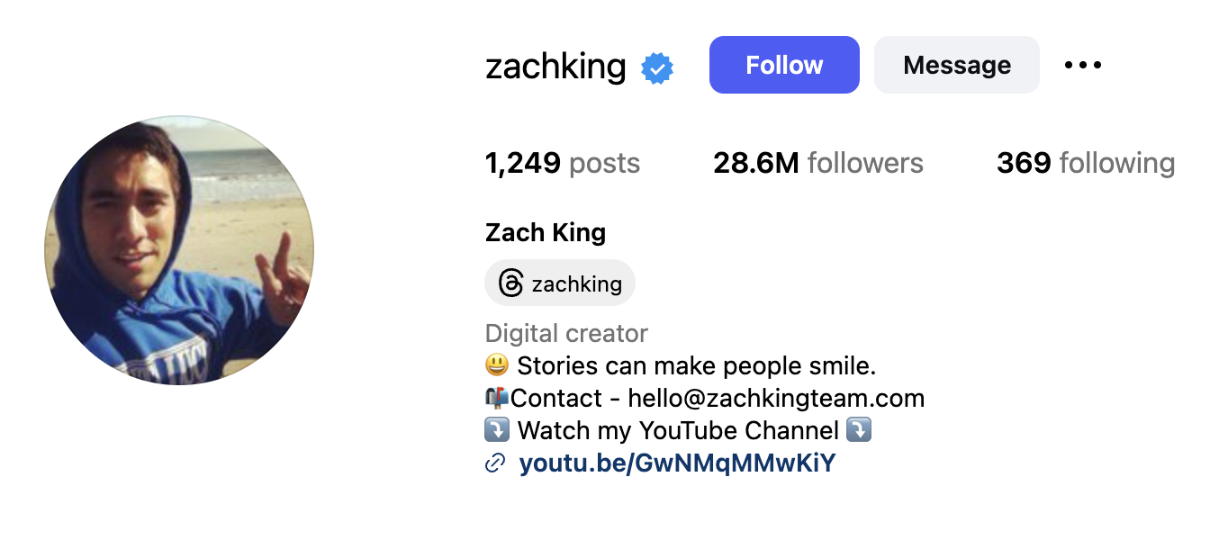 American digital creator and filmmaker known for "digital magic" videos featuring mind-bending visual illusions and seamless editing. Has 82M+ TikTok followers. Former Vine star who successfully transitioned to Instagram Reels. Creates family-friendly content with impossible scenarios and creative transitions. Won 12th Streamy Award for Visual and Special Effects. Added to Fortnite as a character in 2023. Perfect for tech brands, creative software, entertainment companies, and visual effects tools.